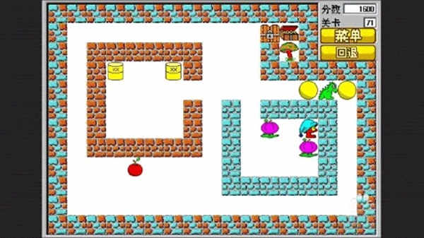 利用圆石和蓝砖-让恐龙吃掉框里食人花