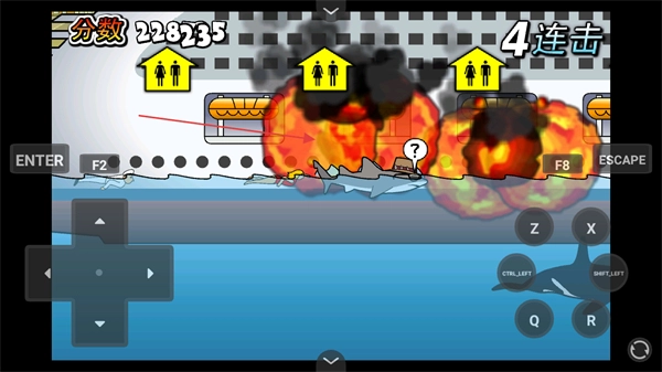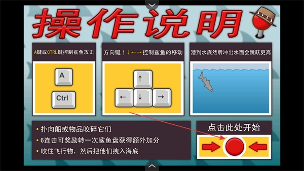 点击右侧的z键,就能操控鲨鱼发起攻击,让建筑和器械遭到破坏并发生爆炸。