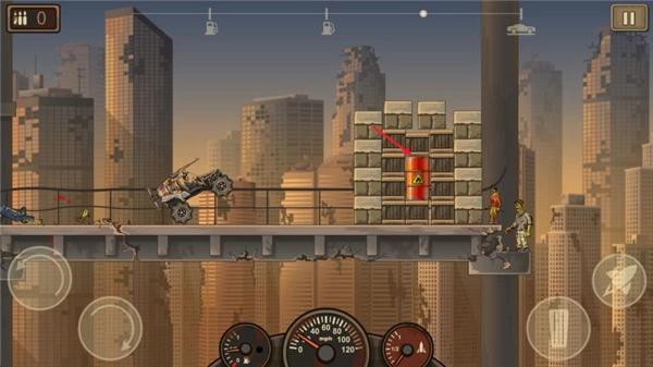 Earn to Die 2手机版是一款超有趣的横版赛车游戏,玩家将在丧尸肆虐的末日世界开启逃亡之旅,驾驶心仪的赛车撞击各类僵尸,还能前往沙漠、城市等特色区域冒险。感兴趣的话,就来体验Earn to Die 2手机版吧!
