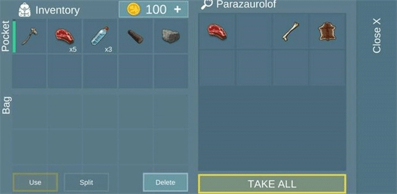 最后点击背包左侧的按钮,就能查看自己拥有的所有资源,这些资源都能帮助我们更好地生存下去。