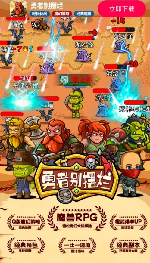 在《勇者别摆烂》的最新手机版本里,玩家将化身英雄小队的队长,率领队员们踏上冒险征战的旅程。这款游戏拥有颇高的自由度,玩家能够自主挑选职业技能,规划独特的修炼路径。游戏玩法十分多样,不仅可以排兵布阵,还能升级塔防设施等。其核心特色在于提供了多种职业供玩家选择,英雄的成长路线也极为自由。而游戏的亮点则体现在灵活多变的战术策略以及丰富多元的战斗形式上。此外,游戏还包含了探索未知区域、扩展领土范围和联盟互动等玩法,装备系统也相当丰富完善。