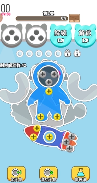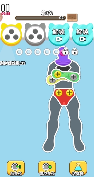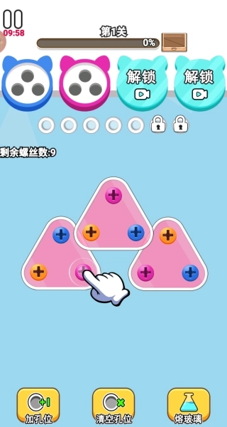 1.开局时要全面观察螺丝的分布情况以及障碍的布局,在脑海中提前模拟多个螺丝配合移动的初始路径规划。