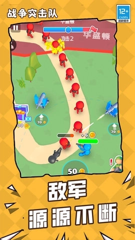 1、玩家能够组建专属的军队,通过购买更多士兵与武器,逐步壮大自身的军事力量。