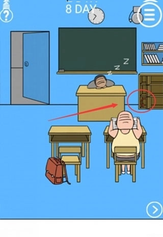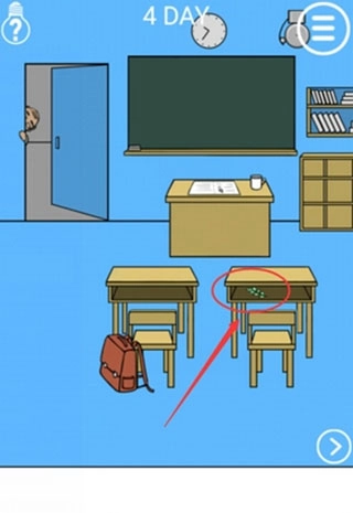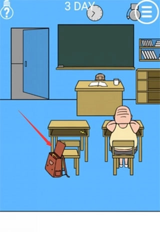 往右侧移动,找到地面颜色稍浅的区域点击,能获取一件神秘的隐形衣;之后返回左侧,点击教室门,待人物出现时迅速把隐形衣拖过去套在其身上,就能以隐形状态逃离教室了。