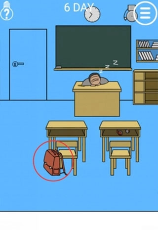 首先拿到书包,接着把书包放到门前,之后连续点击门把手四次,等把手掉下来后,再点击门,门就会打开,主角就能出去啦!