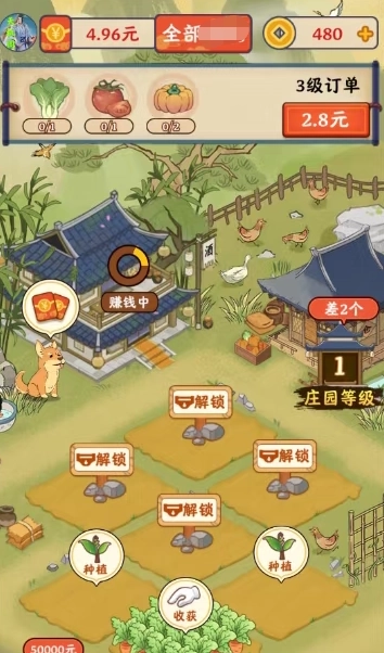 2.饲养鸡、牛、羊等养殖动物,通过收集它们产出的各类资源来实现收益获取。
