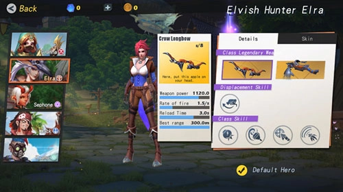 艾拉的两把传奇武器分别是追魂弩和乌鸦长弓,追魂弩是一把中等距离武器,伤害和射速都一般,这里就不再过多介绍。但是乌鸦长弓则不同,是一把拥有300M攻击距离的超高伤害武器,伤害高达1120点,人物本身的基础血量也就1200点,真正的一枪爆头,艾拉首选武器,没有之一