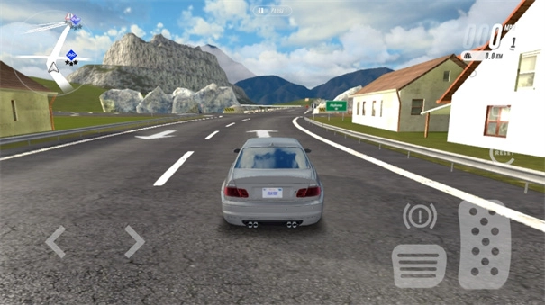 4、点击【DRIVE】,就可以正式进入到游戏中,左边的按钮控制车辆的左右移动,而右边则是油门刹车;左上角可以查看附近的道路地形,右上角可以查看车速;