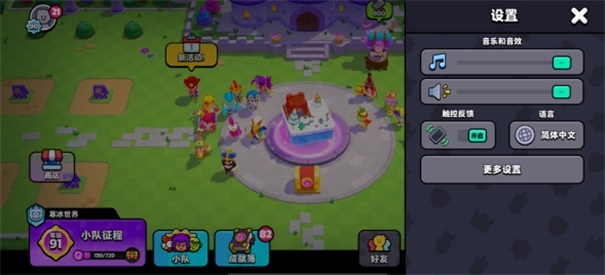 设置:在此处可对当前游戏语言、音乐音效进行配置,还能调节触控反馈,以此优化个人的游戏体验。