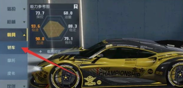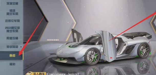 1、进入游戏,进入补给,在至尊军需里面抽取到任意一款跑车皮肤,有跑车皮肤才可召唤出载具