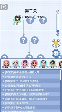 分析各个人物的关系脉络,通过拖动线条把它们连接起来,还原出准确的关系图谱。