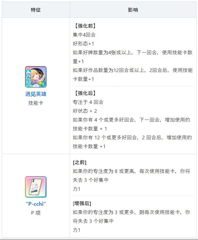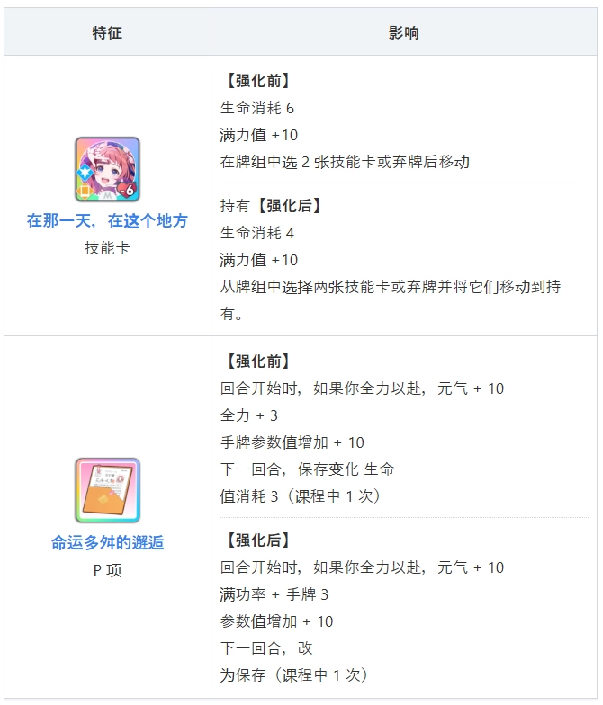 技能卡和 P 物品的效果
