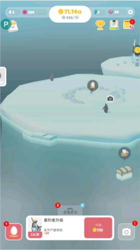 在游戏里,玩家能够通过收集金币去购买各类道具。这些道具能协助玩家更有效地保持企鹅的平衡。比如,能购买冰块道具,用于让冰川更稳固;也能购买保护罩道具,用于保护企鹅不受海浪的干扰,还可以借助这些道具搭建更多的钓台,提升升级的效率。