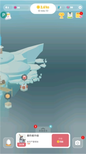 NPC和栖息地的升级仅需钓台与最新建筑。其一,委托仅关联钓台等级与最新建筑等级;其二,主要经济依赖新建筑——新建筑建成时会大幅拉动经济,之后逐步向钓台转化。随着钓台和栖息地进化带来500倍、1000倍的金币产量提升,钓台会慢慢成为主力经济建筑。中间的建筑只需在新建筑建造完成后升级,而且下方升级可长按连升,无需连续点击。
