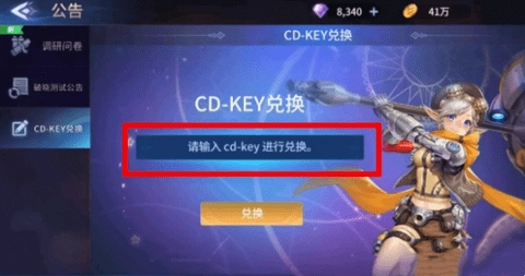 3、点击弹窗左侧的CD-KEY兑换选项,输入对应的兑换码。