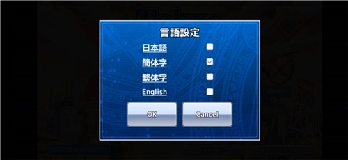 1、进入游戏后,玩家需要耐心等待几秒,这时候,可以进行选择语言,有日本语、简体字、繁体字、English,点击语言后面的框框打钩,点击OK。