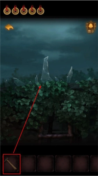 4、点击梯子上方的院墙,用【锤子】敲碎玻璃,获取【玻璃碎片】。
