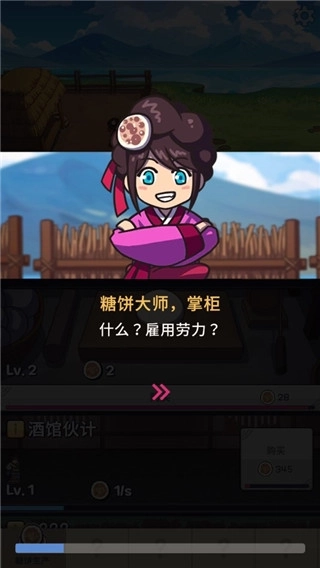 2、向下滑动就能解锁员工,解锁后就可以自动生产糖饼了。
