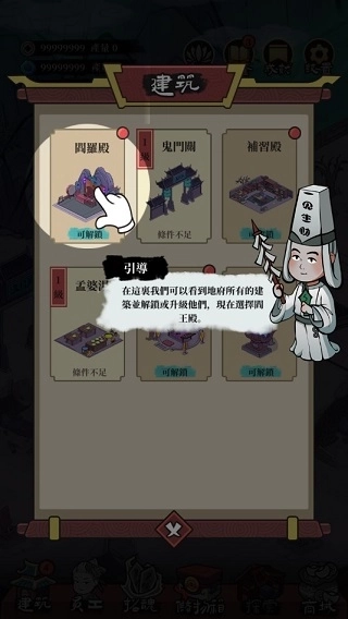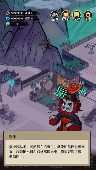 6、地府基建升级:判官殿提升至3级后解锁生死簿功能,可查看鬼魂的前世记忆;地狱熔炉能够熔炼废弃建筑,以此获取强化材料。