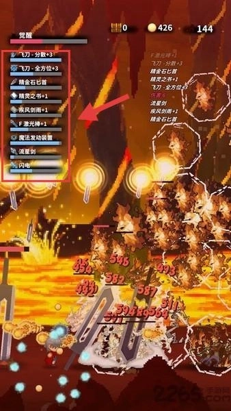 1、战斗时搭配【飞刀-分数+3】【精准匕首】这类技能,触发特效来清理怪物,收集金币(426)以提高收益。