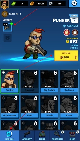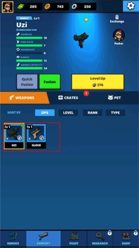 2、游戏内设有多种武器与人物角色,玩家可通过挑战关卡解锁它们,也能利用获取的资源进行升级强化,提升其攻击力、射速等属性,从而在关卡中更高效地消灭敌人。