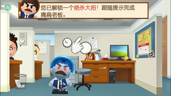 6、你可以把那个老板想象成任何让你感到不爽的对象,尽情地暴揍他一顿,痛痛快快地发泄出你心中所有的怒火!这样之后,世界仿佛都会变得更加美好呢!不过要注意别太激动,要是戳坏了手机可就不好了,一定要记住,不要在上班或者上学的时候玩哦。