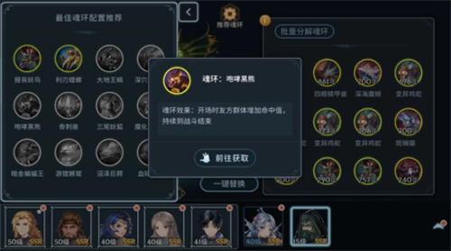 其他魂环可自行搭配,重点选择群体光环类效果;若命中属性不足,非常建议搭配咆哮黑熊与辅助系魂环来实现双命中叠加。