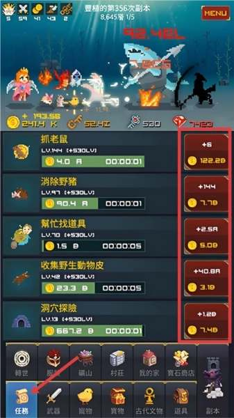 5、自动挂机功能:开启后角色将自动进行战斗与资源收集,离线状态下的收益同样会被保留,即便是碎片化时间也能助力角色轻松提升等级。