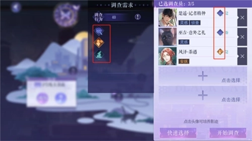 2、挑选能力标签匹配的影迹。在现代篇第一章的2号线车厢一关卡里,当调查效果值达标的时候,选用带有【灵感】能力标签的影迹就能开展调查。而且,并非能力标签“不满足”就一定没法顺利推进调查。要是影迹数量有限,你可以选择该类型中调查效果值“更高”的影迹来完成通关。另外你也可以留意右上方的调查气泡,因为它是判断当前阵容能否通关最直接的提示。