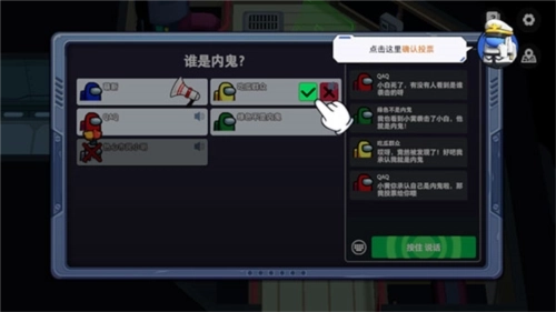 4、会议期间可以和小伙伴通过聊天、语音的方式交流推理,找出可疑人员并进行投票。