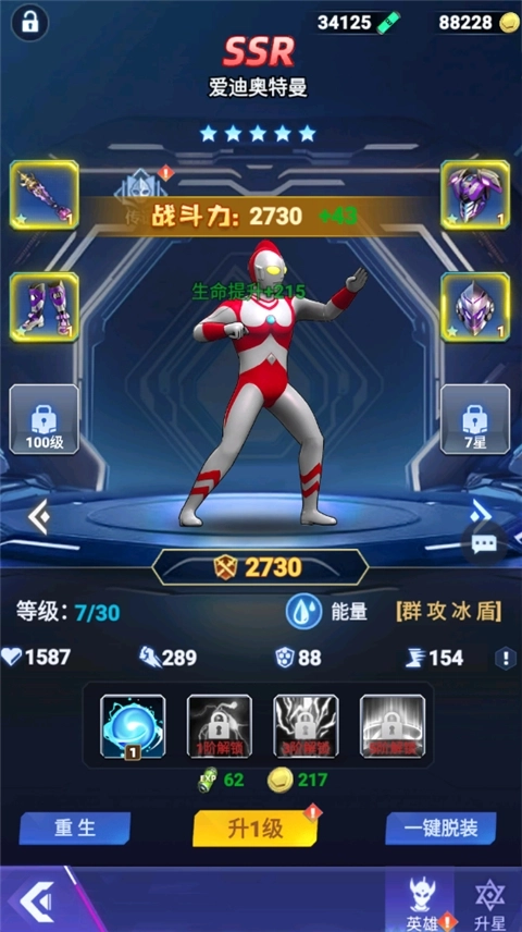 4、通过资源提升奥特曼等级。