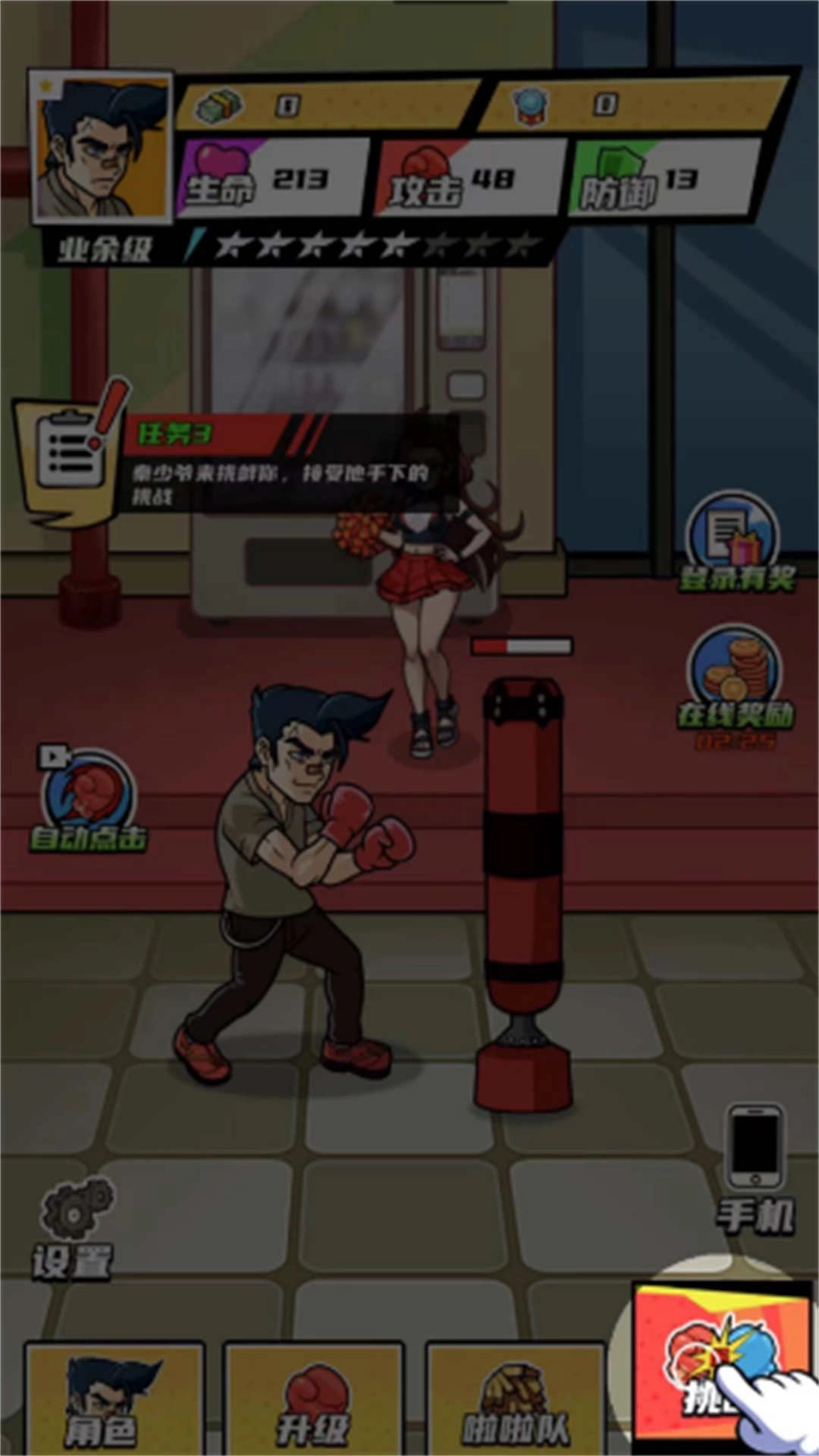 1、采用卡通风格打造场景,结合创新的拳王格斗玩法,完成各类高难度拳击任务;