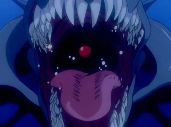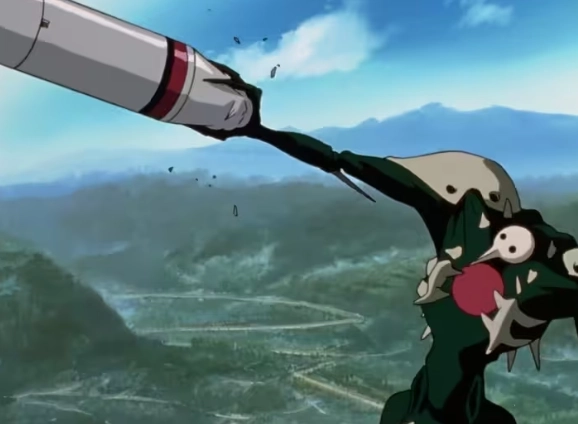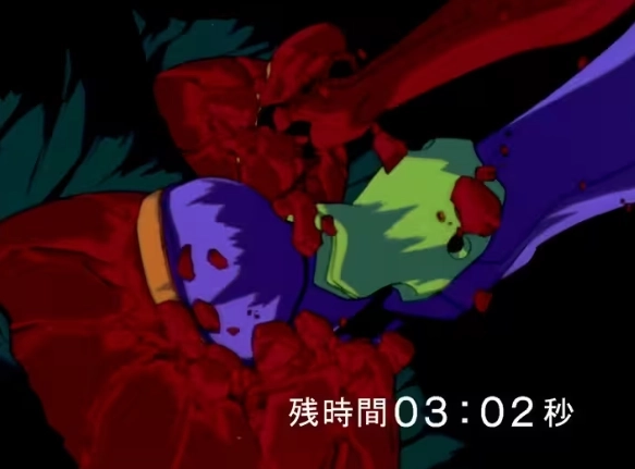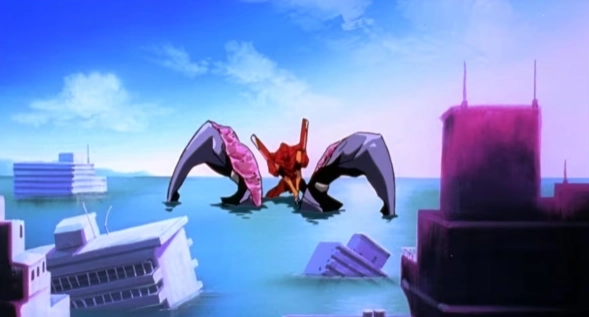 之后在水中,它的嘴巴被二号机强行掰开,随即被撞进两艘战舰之中;战舰的主炮在使徒体内对准其S²核心,以零距离齐射将其击毁。