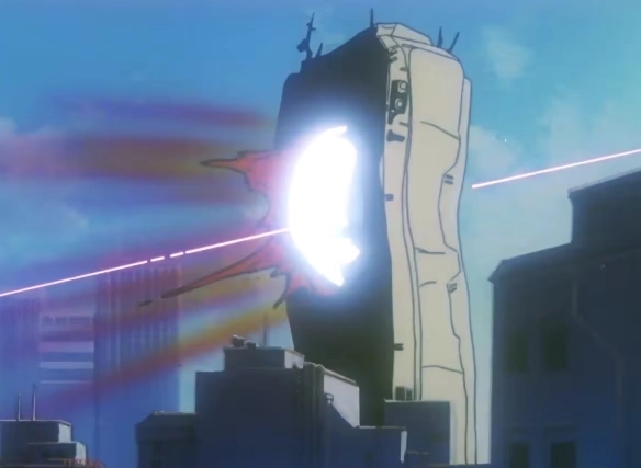 第五使徒的粒子炮攻击把初号机击退了,随后使徒便用钻机慢悠悠地向下钻探。(这使徒的粒子炮威力确实惊人,可惜智商实在不太高——要是直接用粒子炮往地下轰上几下,估计早就解决问题了,哪还用得着费劲摆弄钻头呢)
