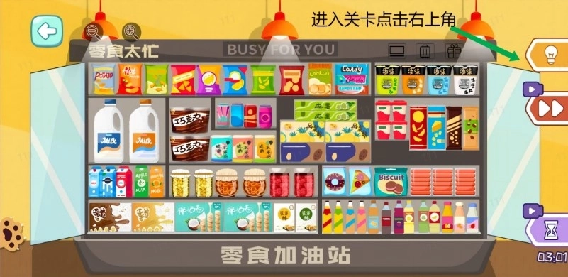 使用链接点击跳过按钮,就能在收纳关卡中触发自动摆放功能。