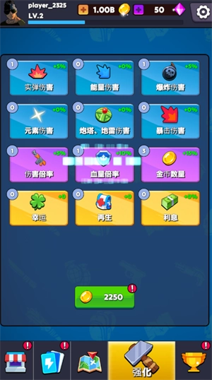 3、关卡结束后能量会自动转化为金币,玩家可使用这些金币来提升自身能力
