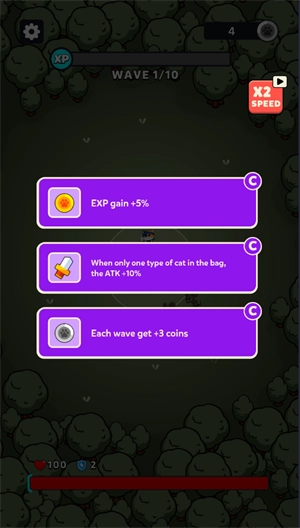 猫咪小队会带领你进入一个兼具宁静氛围与挑战元素的森林世界。在这个世界里,你既要体验烹饪带来的乐趣,也得应对潜藏在暗处的怪物所带来的威胁。游戏的核心玩法聚焦于策略规划与资源管理,你需要在篝火周边有限的空间里,灵活地安排你的猫咪伙伴——它们可是抵御怪物的核心力量。这些猫咪伙伴各有独特之处:有的在攻击方面表现出色,有的擅长防守,还有的能为团队提供治疗支持。而根据怪物的不同特性以及实时的战斗状况,合理挑选并搭配这些猫咪伙伴,正是这款游戏策略性的关键所在。