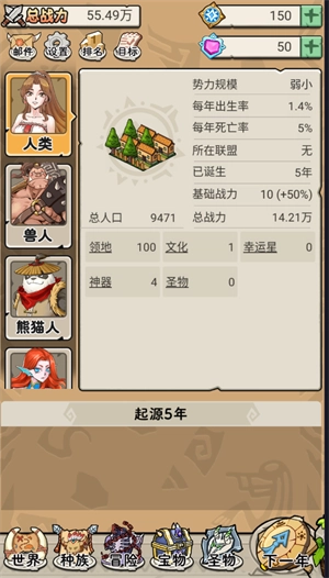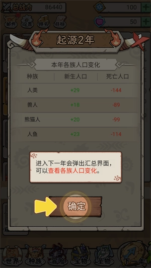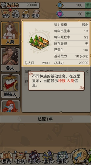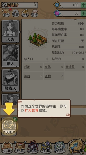 1、作为这个世界的造物主,你可以扩大世界疆域。因世界扩大,有新种族诞生,开始发展领地,繁衍生息。