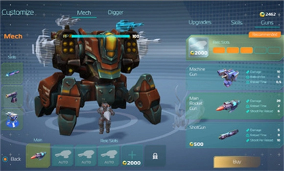 3、机甲定制:玩家能够对自己的潜艇机甲进行升级与个性化设置,打造出专属的独特战斗机器。