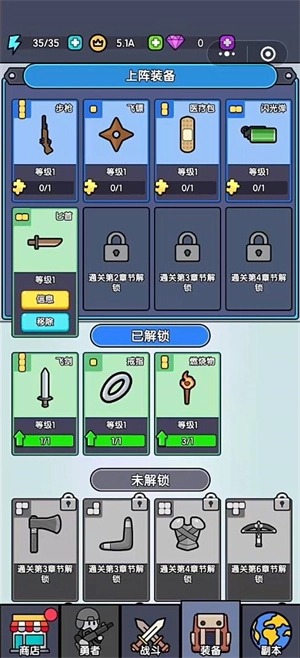 游戏内关卡数量不少,可合成的装备种类丰富多样,游玩过程趣味十足,你能从中感受到别具一格的乐趣。