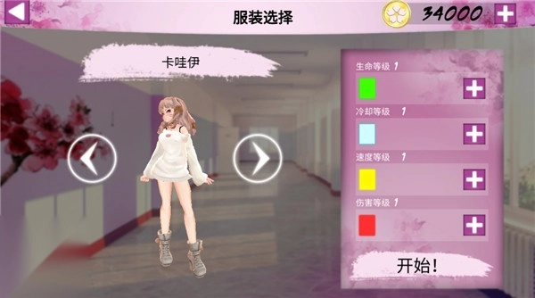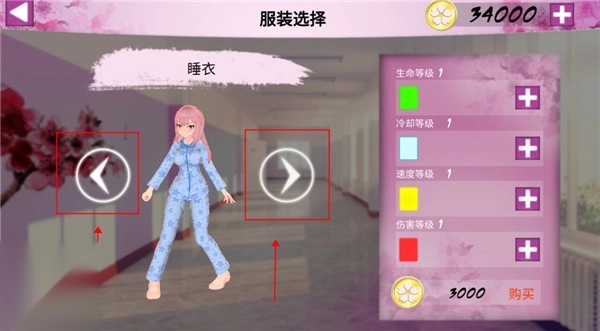 2、点击角色旁边的按钮能够切换服装,尚未解锁的服装需要使用金币购买。