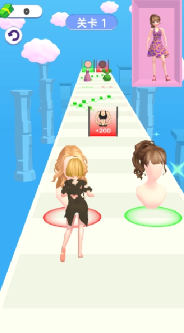 点击开始游戏后,操控娃娃在跑酷过程中收集所需的发型,以此完成初次改造。
