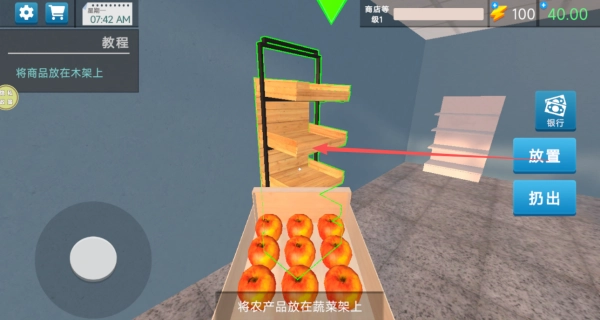 拿起货物后,走到货柜前,点击“放置”按钮,即可将货物全部上架。