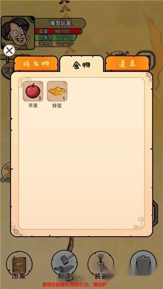 5、收集到的物资可点击进入背包使用,你在此处需要不断探索以掌握荒岛全貌,确保自己能随时获取所需资源。