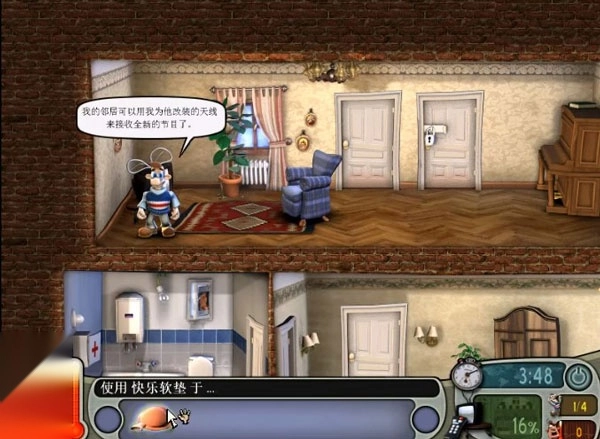 5、前往大厅,取出电视天线,将那张承载着快乐的垫子铺在沙发上,此刻你便能目睹邻居被蒙在鼓里的瞬间。