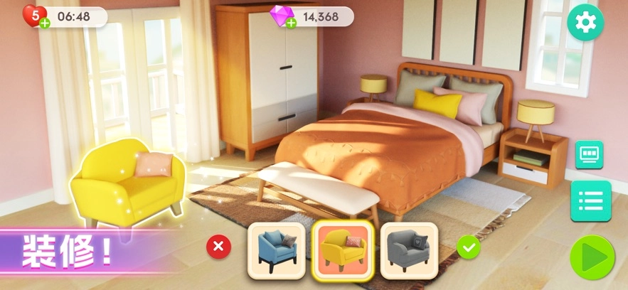【家居定制,理想生活近在眼前】游戏里呈现出丰富多样的室内设计风格,令人眼花缭乱!时尚简约的Loft、充满温馨感的田园小屋、尽显奢华的海景别墅等,都会逐步解锁,供你挑选。在线上,和你心中向往的生活来一场邂逅吧!