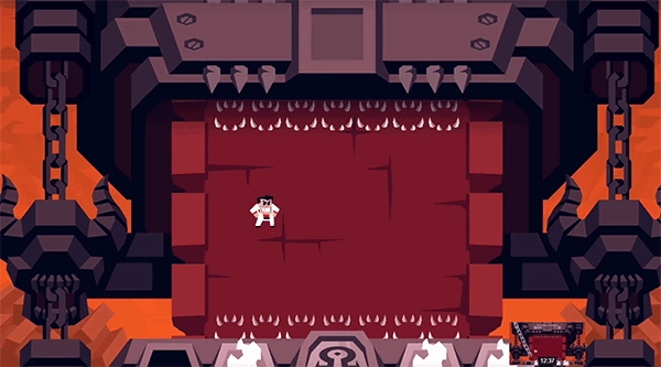 要是你不玩回避游戏,这场战斗或许会相当艰难。你的角色得在躲开尖刺的同时避开boss的攻击,而且当屏幕停止移动时,你必须攻击屏幕两侧的链条才能继续推进。