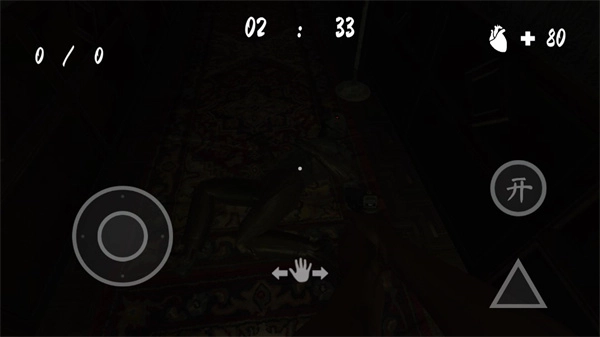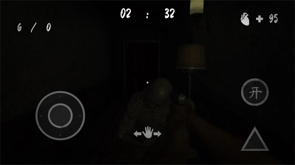 2、正式开始游戏后,进入操控界面,左侧是移动摇杆,中间则可以滑动屏幕环顾四周,顶端是游戏倒计时,右上角是你的生命值;