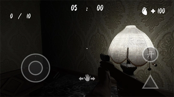 4、开灯以后可以看到桌面上的手枪,点击拾起并且握在手中;