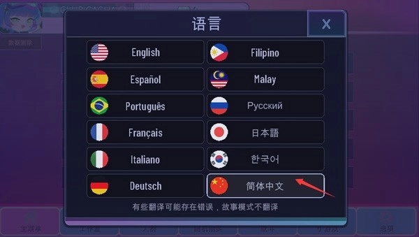 4、在设置菜单中找到语言选项,切换至简体中文模式;
